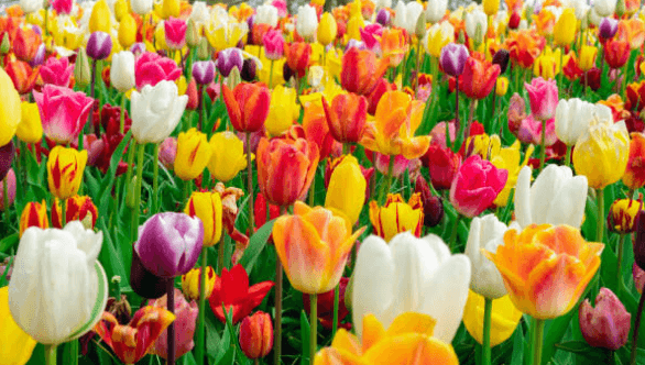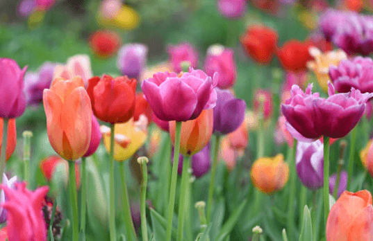 튤립은 4월부터 5월까지 다양한 색과 형태로 피어납니다. 공원이나 화원에서 자주 볼 수 있으며, 많은 사람들이 이 시기에 튤립을 즐기기 위해 기념사진을 찍으러 가는 인기 있는 꽃입니다.
